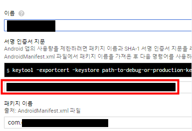 ②개발자가 마켓에 업로드한 인증서(아마도 apk를 업로드하면 인증서를 인식할꺼임). 이 인증서의 SHA1값이 위 2번에 입력되어 있어야 마켓 올리기전 real빌드로 뽑은 apk의 Play Service로그인이 가능하다.