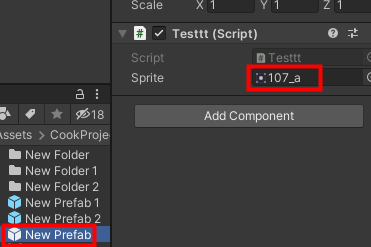 New Prefab에는 107_a라는 Sprite가 바인딩 되어있다.